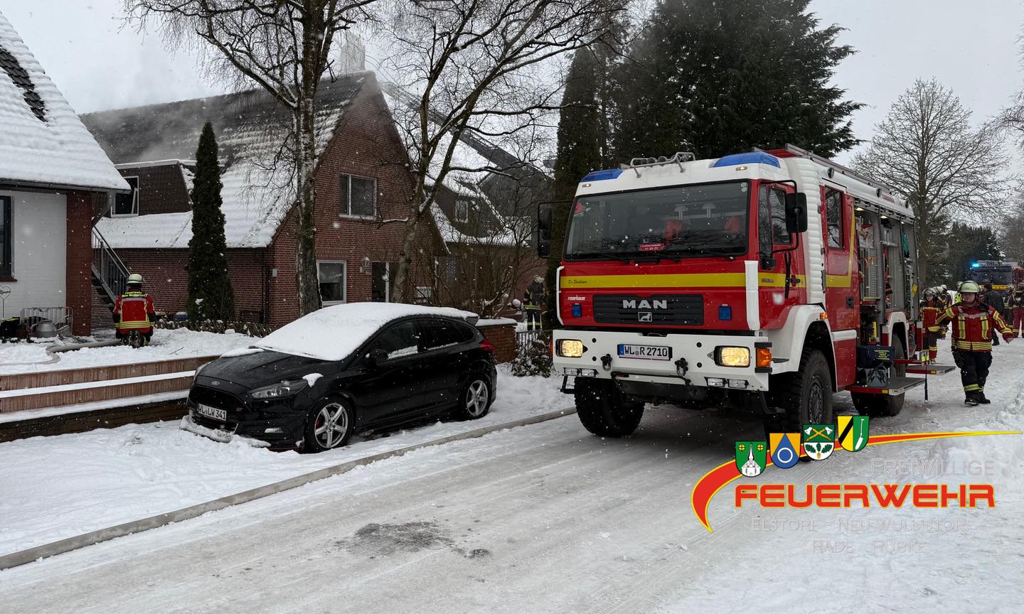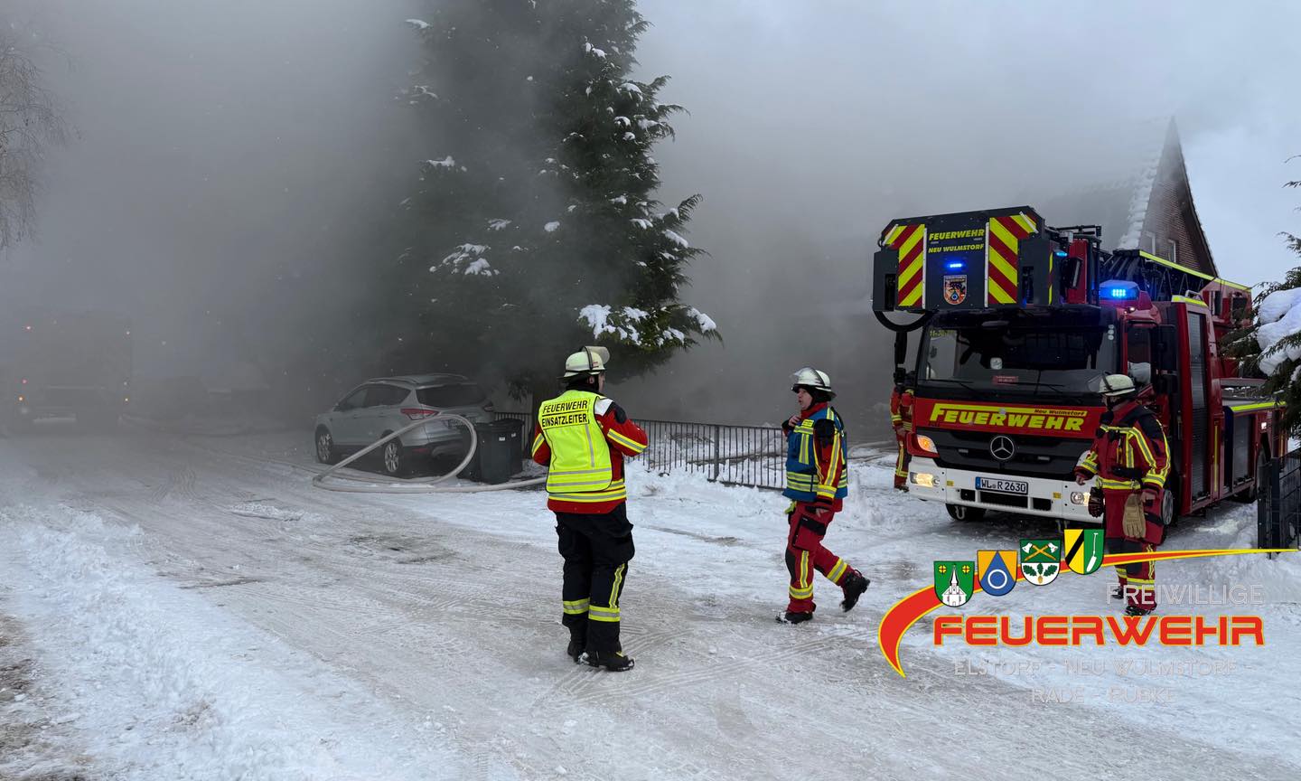 Am Donnerstagmittag kam es zu einem ausgedehnten Wohnungsbrand in einem 3-Parteien-Wohnhaus im „Rüterweg“ in Schwiederstorf / Elstorf. Zunächst wurde davon ausgegangen, dass noch mindestens eine Person in der betroffenen Wohnung sei.
