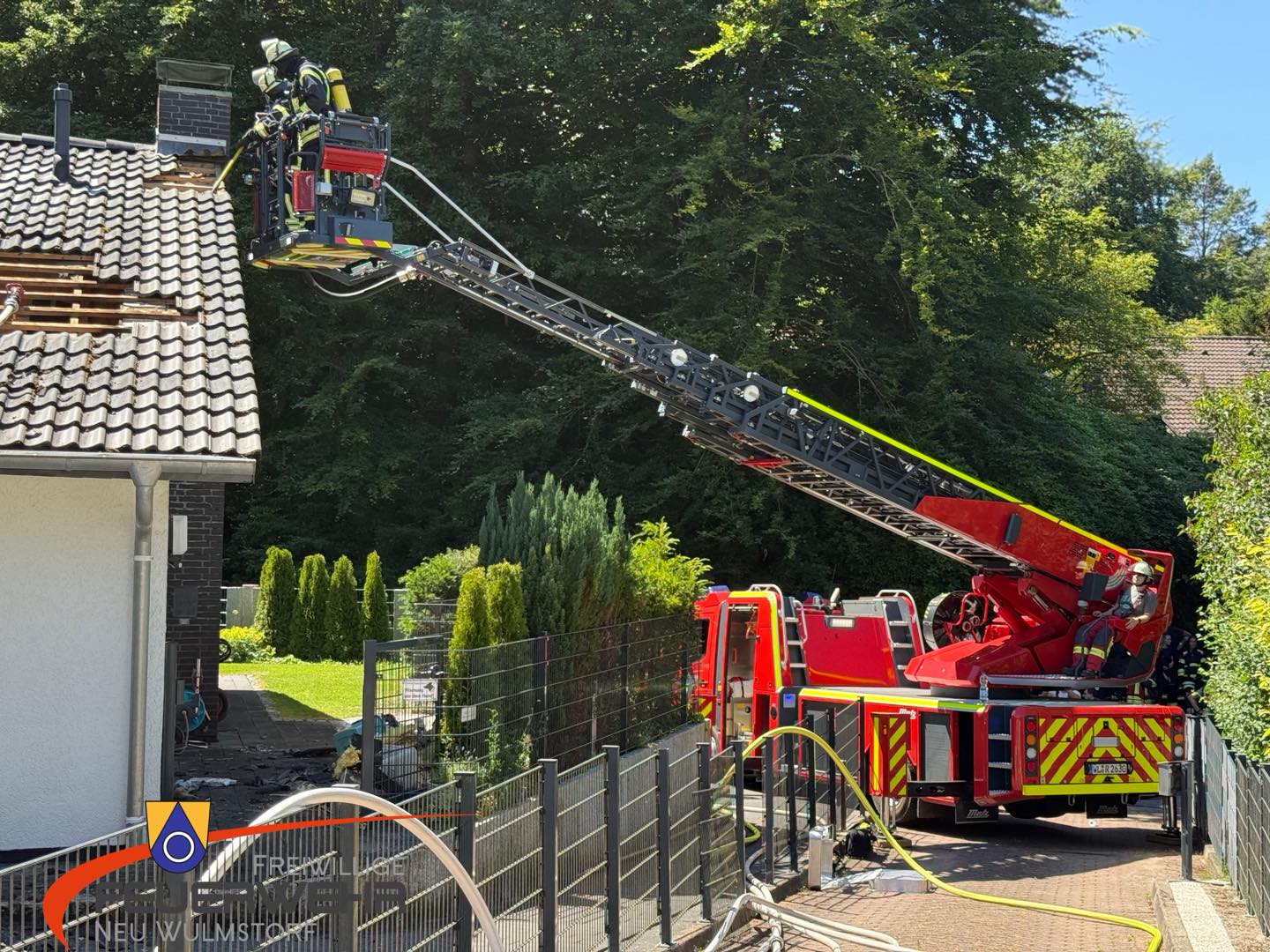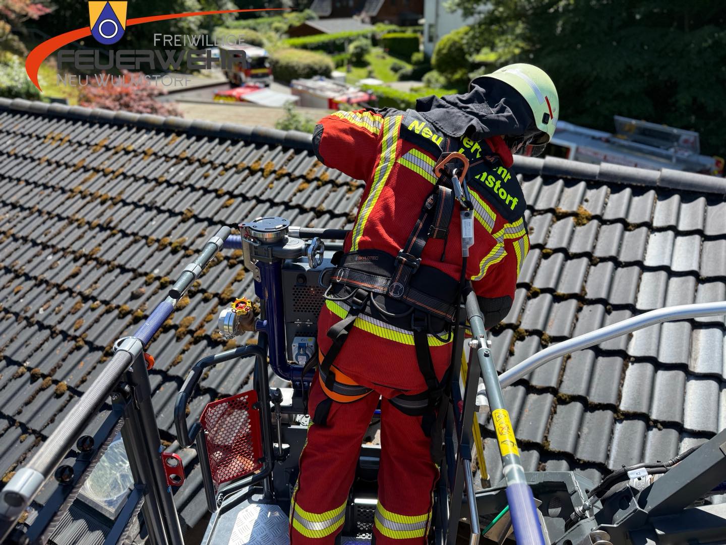Vor Ort hatten die örtlichen Feuerwehren bereits umfangreiche Löschmaßnahmen durchgeführt gehabt. Wir unterstützten bei der Suche nach Glutnestern und das Entfernen der Dachziegel. Bei enormer Hitze ist dies für die zu 100% ehrenamtlichen Einsatzkräfte sehr anstrengend.