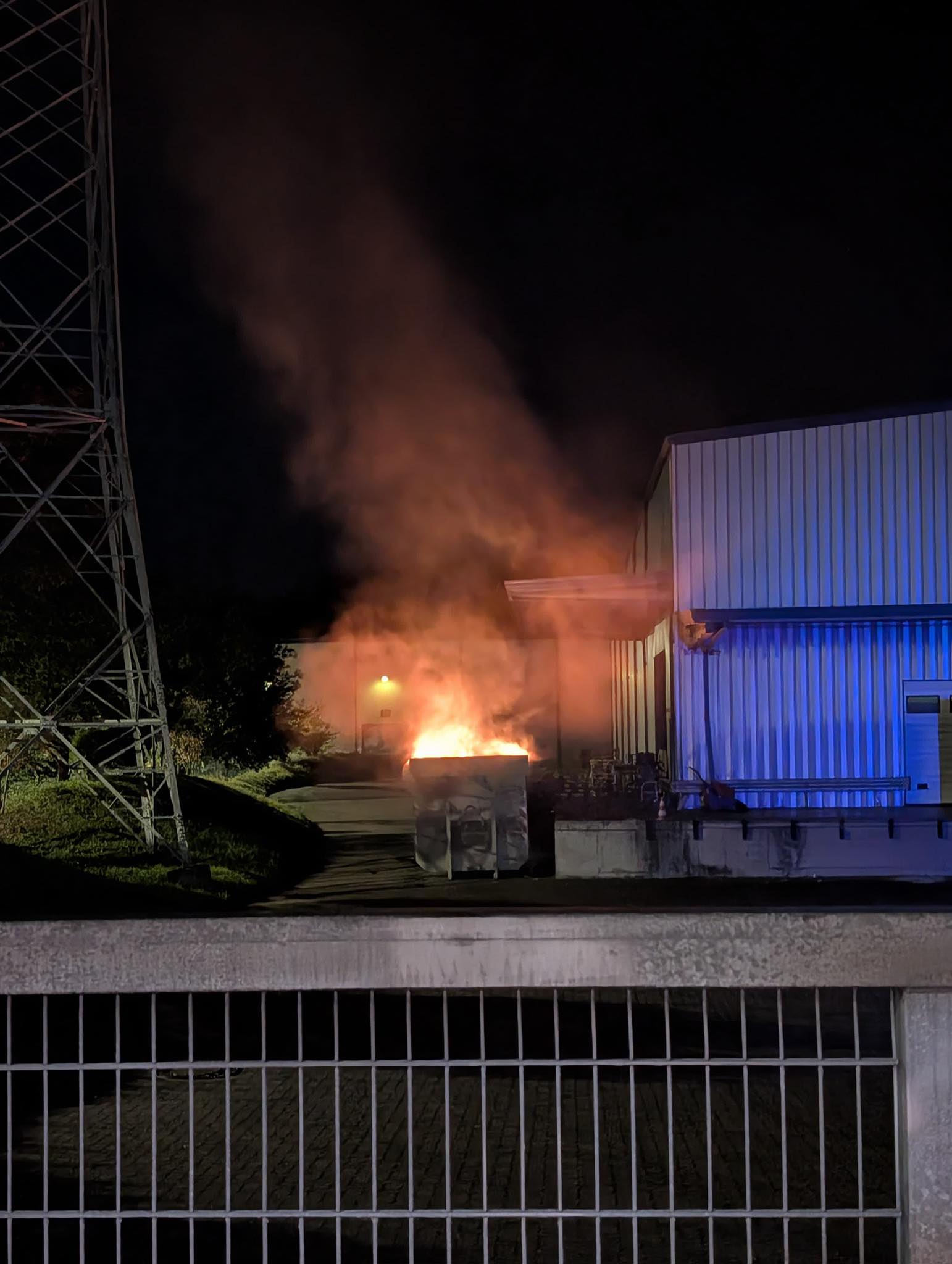 Auf einem Firmengelände brannte ein Container mit einem Volumen von etwa 35m³ in voller Ausdehnung. Wir verschafften uns Zugang zum Gelände und führten die Brandbekämpfung mit einem Strahlrohr durch. Ein Trupp unter Atemschutz öffnete den Container, in dem gepresste Kartonagen gelagert waren. Da das Entfernen der Kartonagen einen hohen Zeit- und Personalaufwand erforderte, wurde entschieden, den Container mit Schaummittel zu fluten. Ein zweiter Atemschutztrupp befüllte den Container bis zur Oberkante mit Schaum.